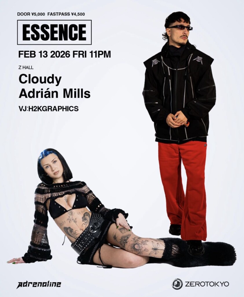 世界のテクノシーンに新たな風を吹き込む新星「Cloudy」とスペイン出身、ドイツを拠点に世界を席巻するハードテクノの新星、「Adrian Mills」が、2026年2月13日(金)にZERO TOKYOへ上陸する。